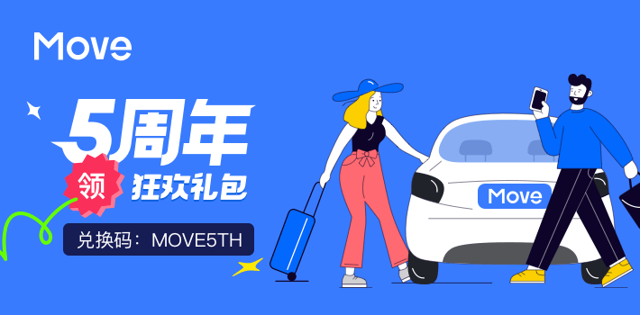 🎉 Move五周年特别回馈上线啦!五周年之际,我们为您精心准备了一份出行礼包!输入兑换码MOVE5TH即可领取总计5张5折优惠券!感谢您一路相伴,未来每一程,Move继续与您同行,共赴美好旅程!🚙💙🎁活动详情:📲兑换码:MOVE5TH🔔平台兑换上限:1次/用户🚖适用车型:经济车/嘟嘟车/Remorque🚖适用服务:实时🗺适用城市:西港/暹粒📅活动日期:即日起至2025年8月3日*需符合条规